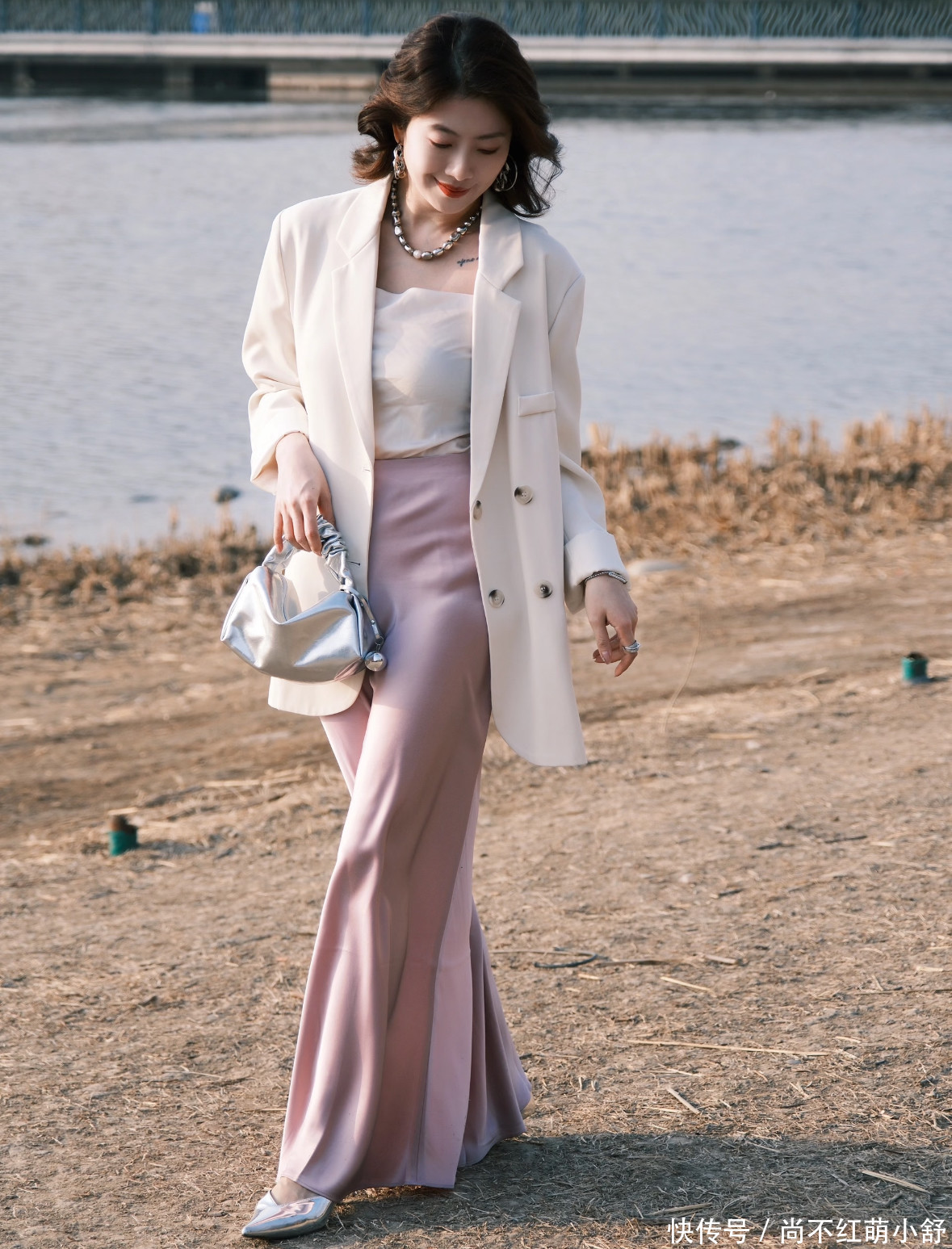 它最大的优点就是在于那种含蓄的性感与极致的优雅。它能让你不自觉地挺直腰背,步伐变得轻盈稳重。那怎么搭?关键在于“松紧平衡”。具体look如下: