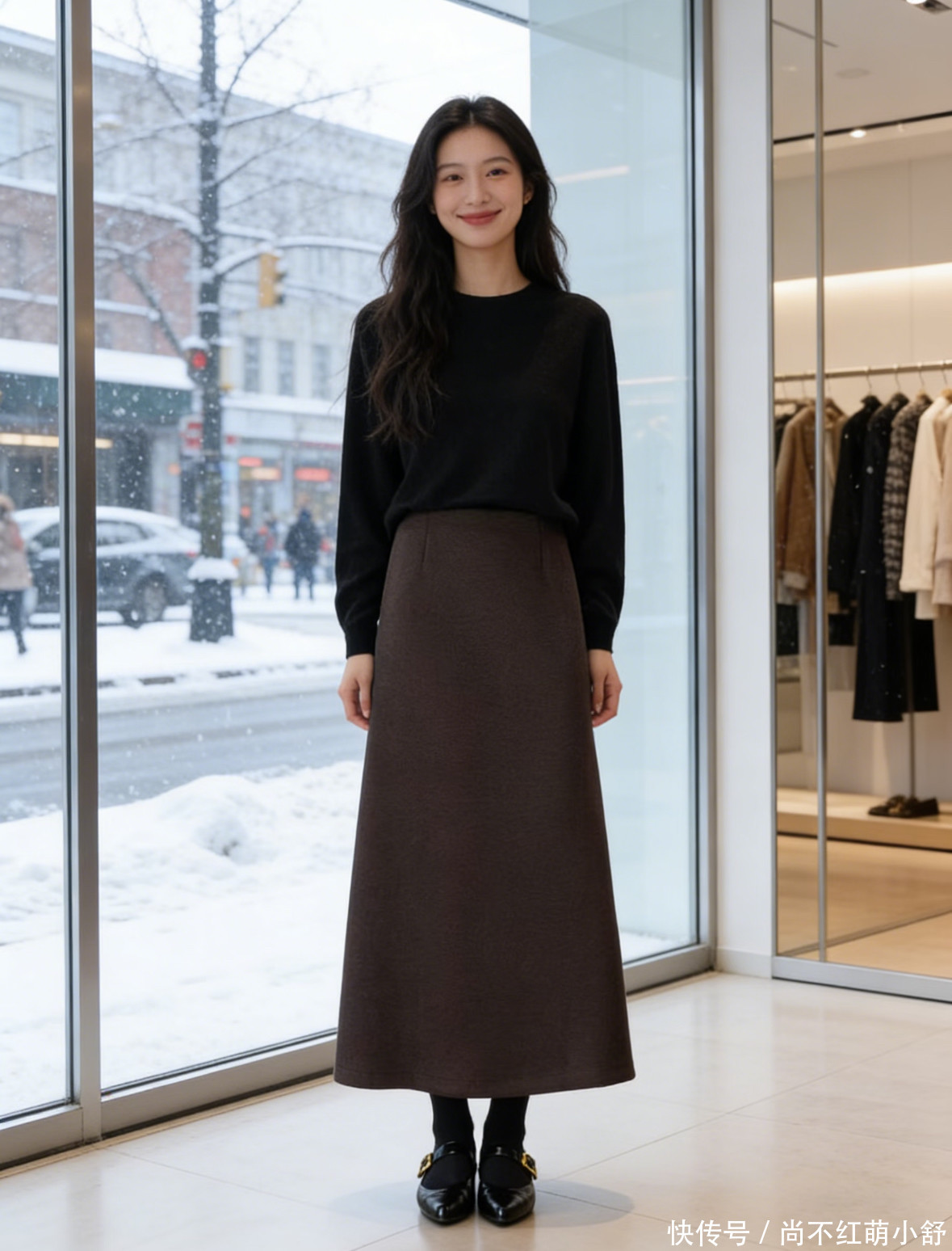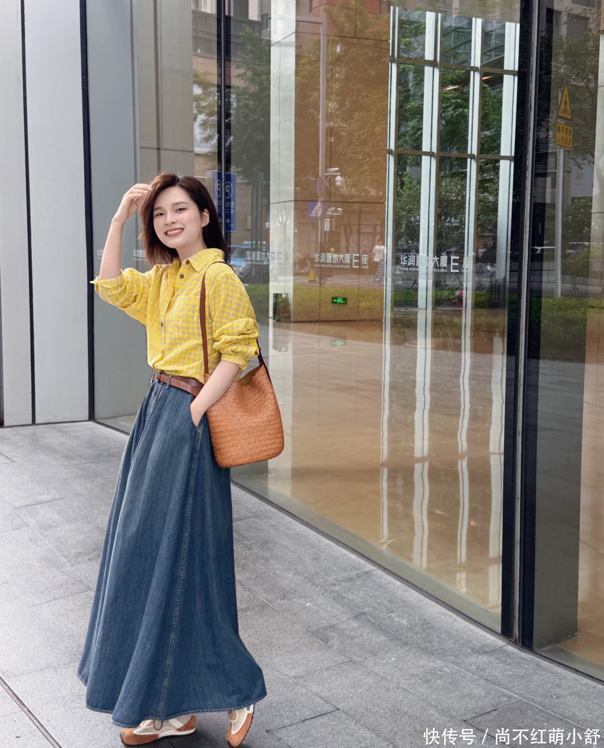 避坑提示:避免面料过于软塌(如某些雪纺),容易显廉价;也避免裙摆过大过蓬,否则会压个子。挺括的棉质、羊毛混纺或丹宁,是完美选择。